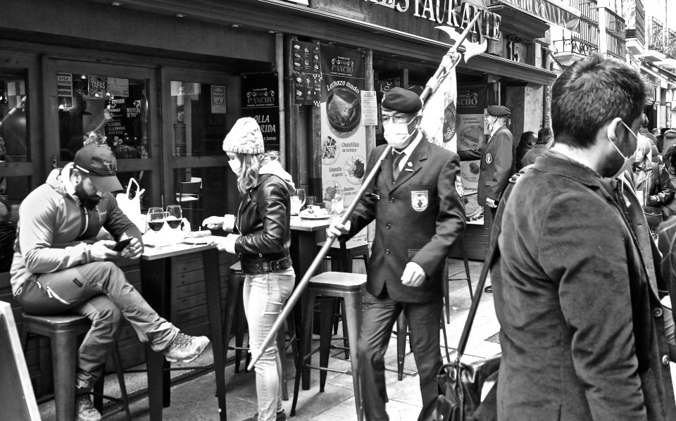 Coronavirus was already in the minds, but not as an danger. We had joined this Plaza by chance, the chance that makes things so good for the slow photographer on the lookout. It was just a fortnight before it was forbidden for all Spaniards to leave their homes.