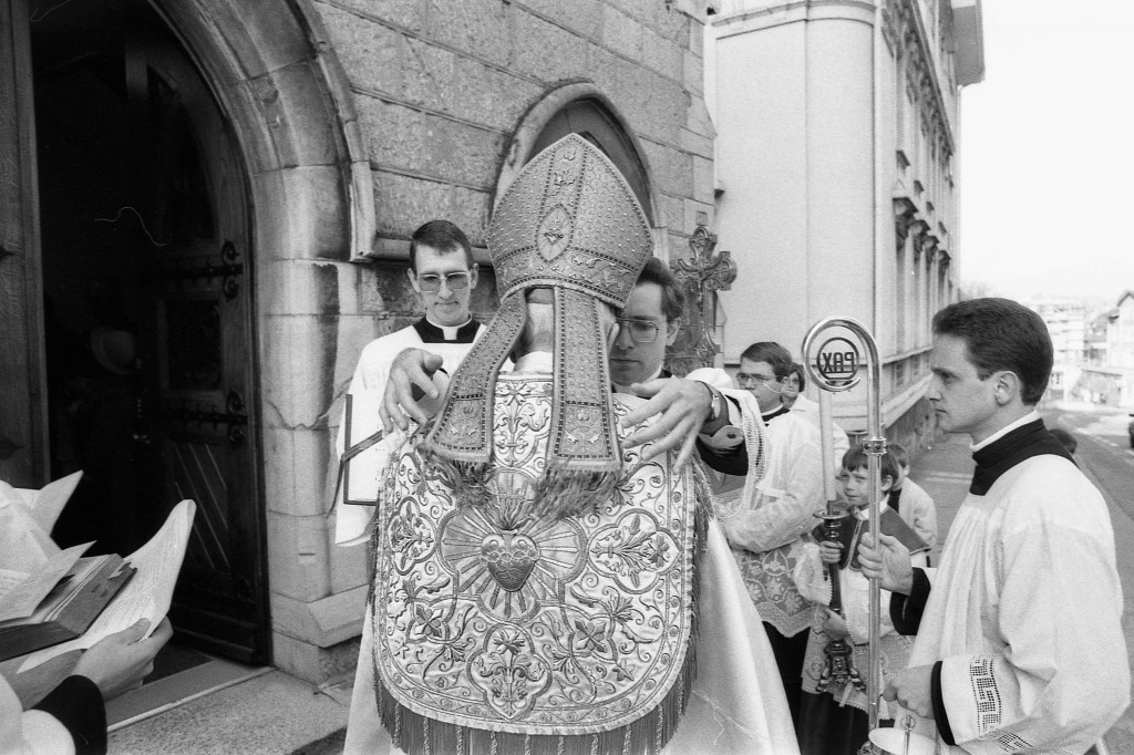 Inauguration of a fundamentalist church by Monseigneur Lefebvre in Montreux. Switzerland, 1987 :